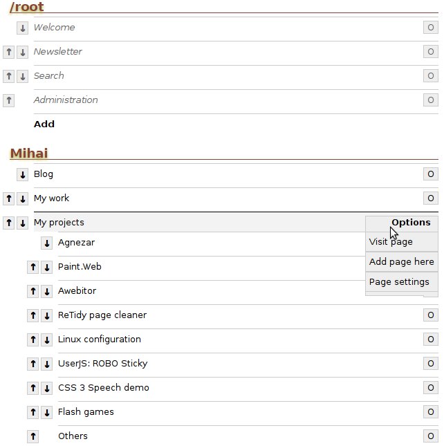 For each page the user can change the title, the path and the "hidden" state. You can have a page which doesn't show up in the site navigation menus.